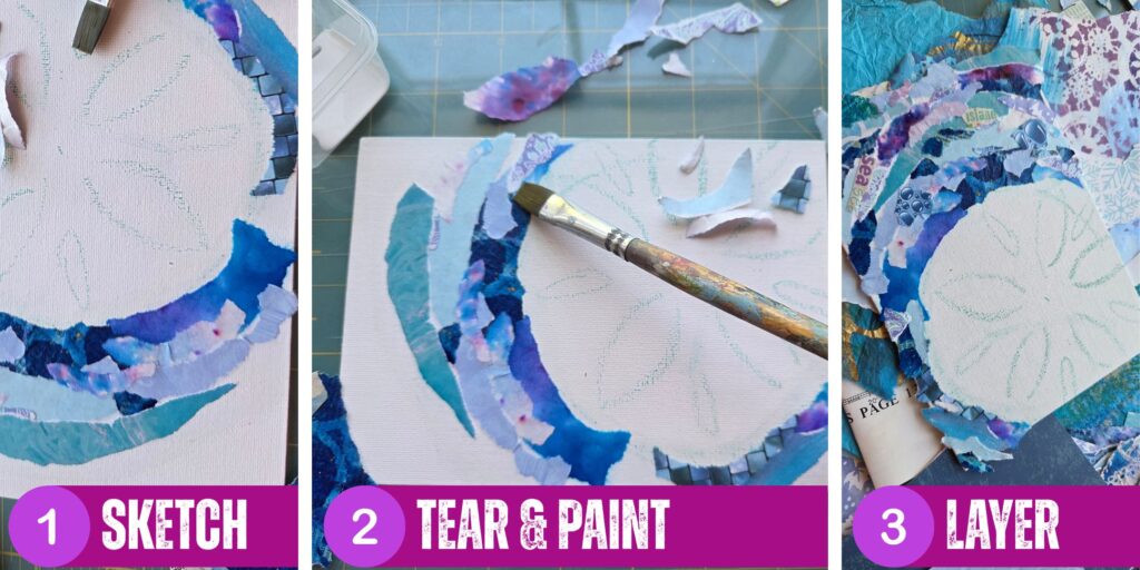 All supplies included to complete one coastal collage artwork