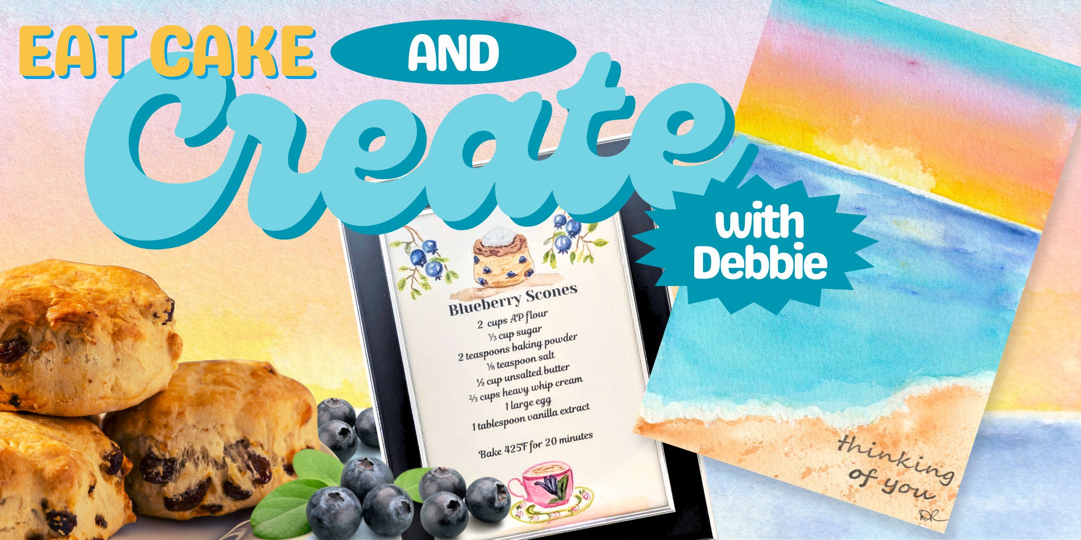 In this delightful watercolor workshop, you’ll paint a charming blueberry scone recipe card while enjoying a homemade scone. Then, shift your creativity to the coast as you design a hand-painted postcard inspired by ocean skies—choosing your own sunrise or sunset palette.