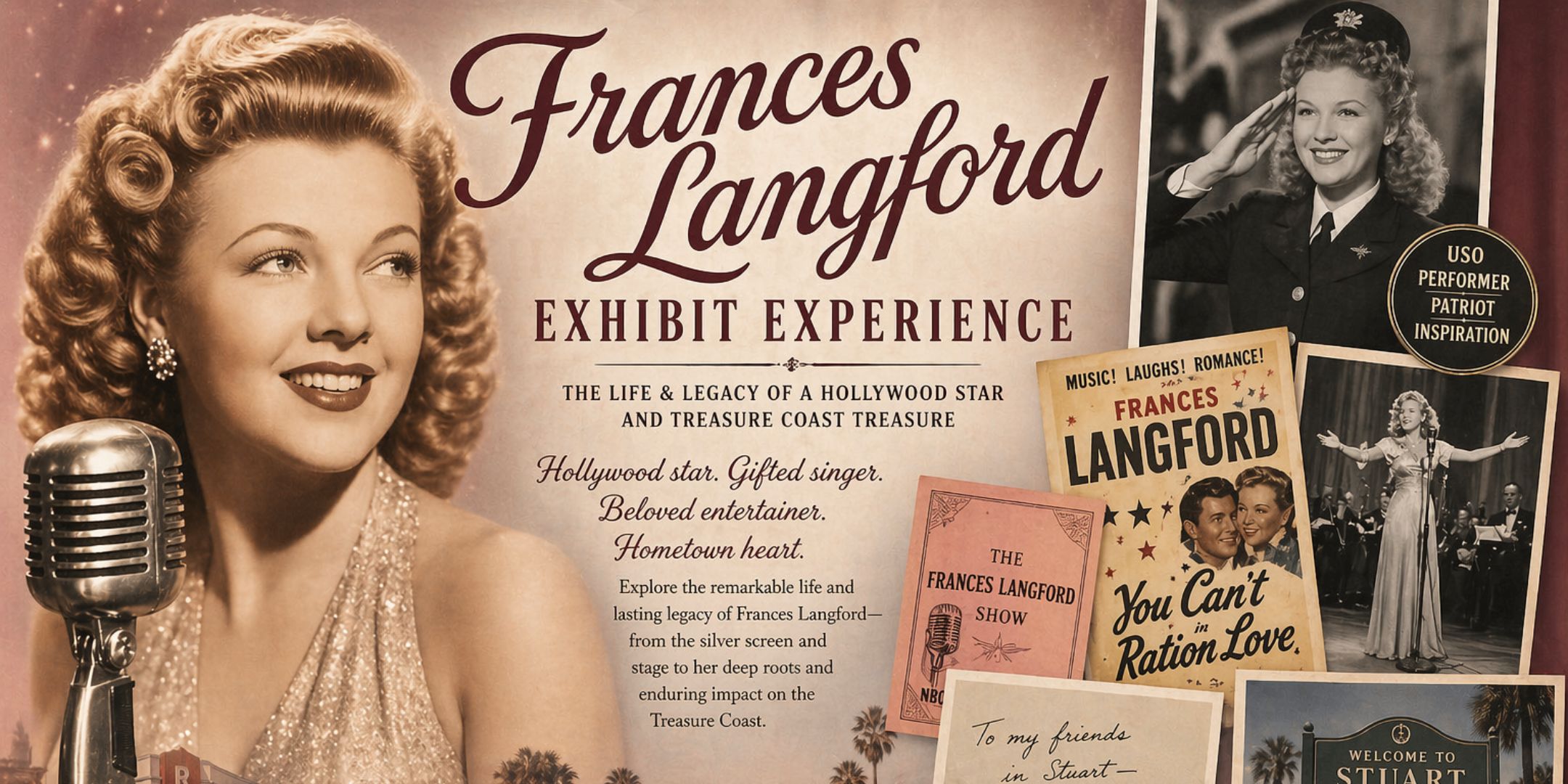 From the legends of the Ashley Gang to the elegance of Frances Langford, each afternoon offers a unique opportunity to explore the stories that shaped the Treasure Coast and beyond…Let’s start this Friday with Langford’s remarkable career.