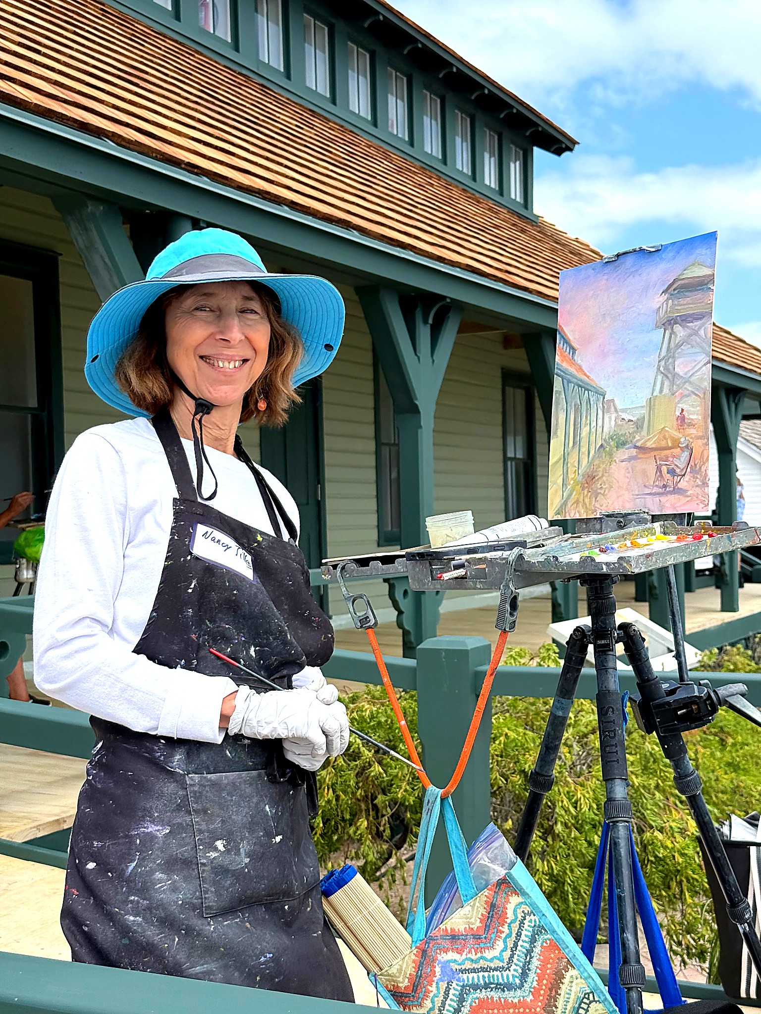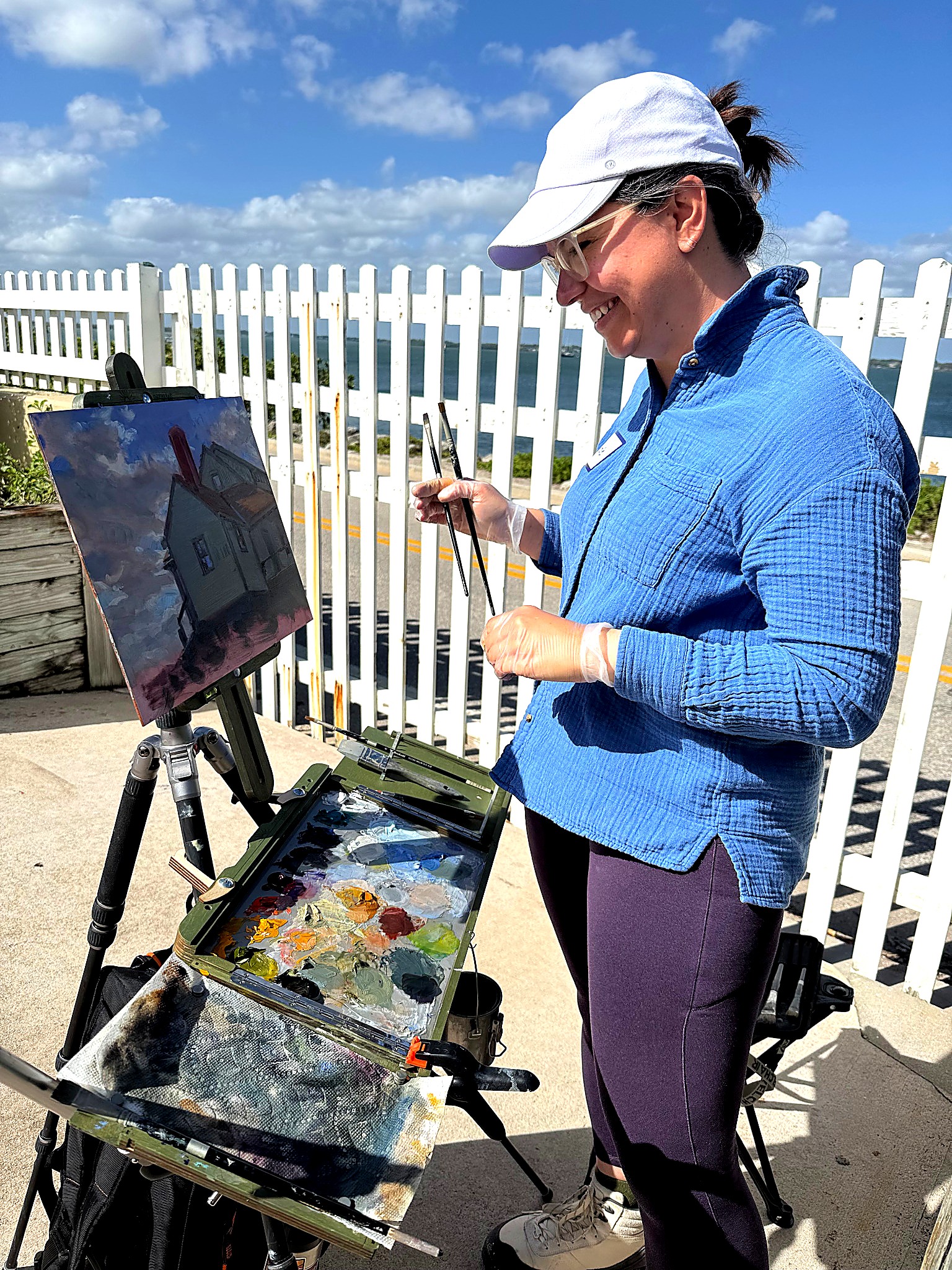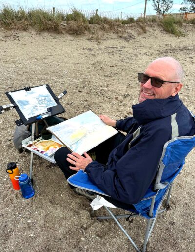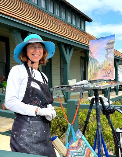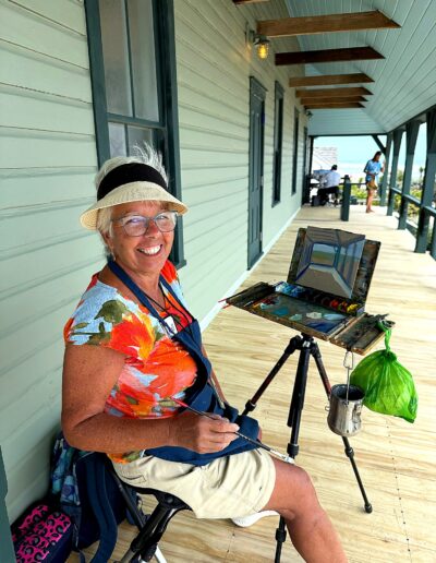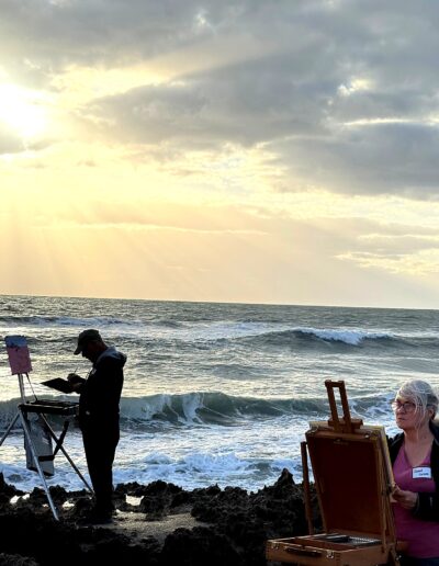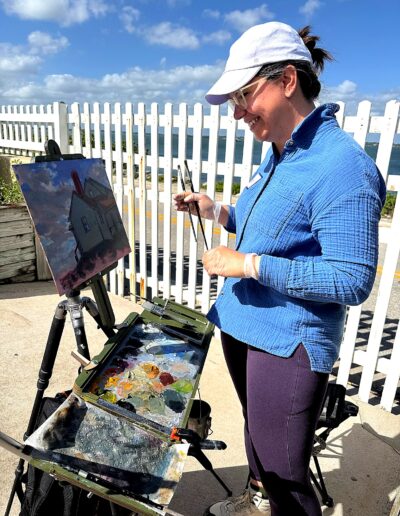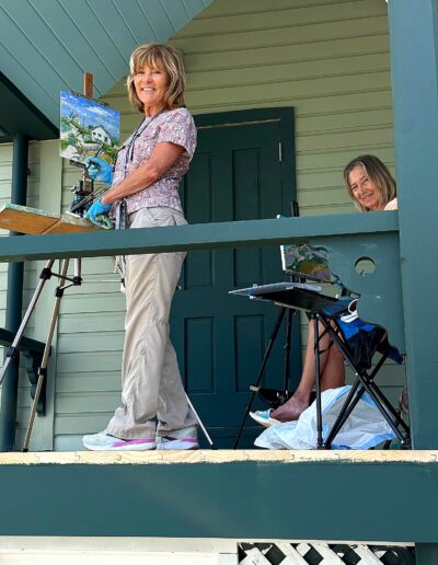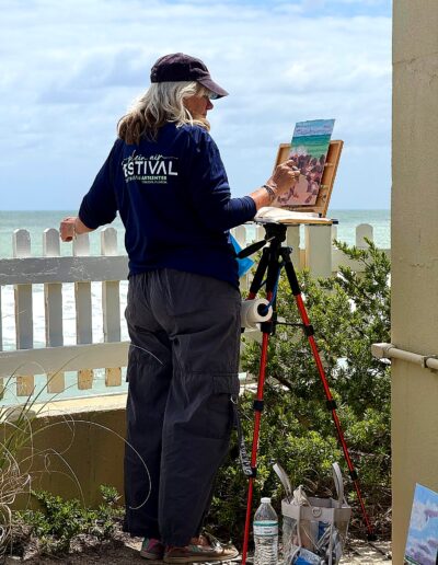 From early morning through the afternoon, visitors and passersby experienced the creative process firsthand. Easels lined the property as artists interpreted the scene in their own distinctive styles—some focusing on architectural detail, others on the movement of the sea and sky, and many blending both into expressive, atmospheric works.