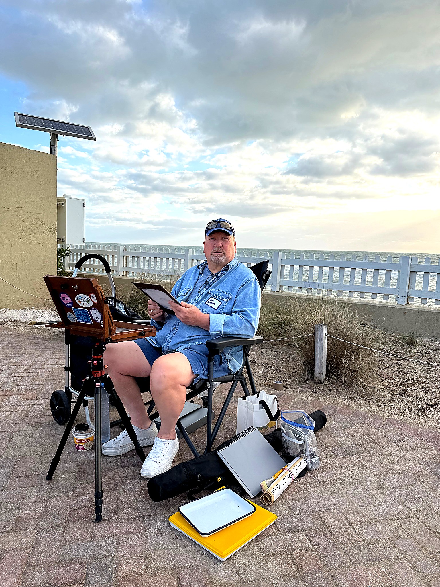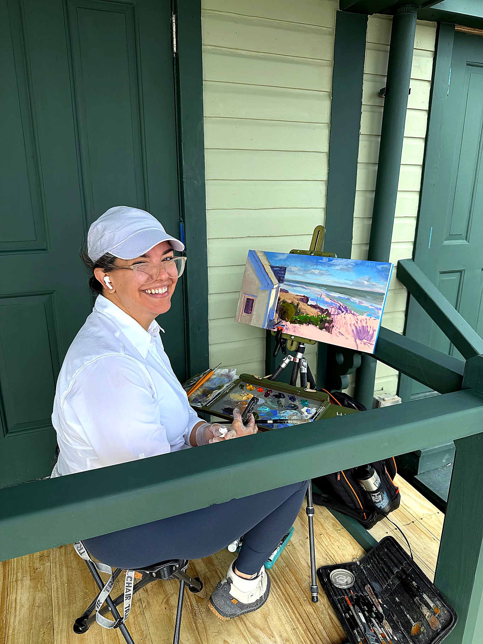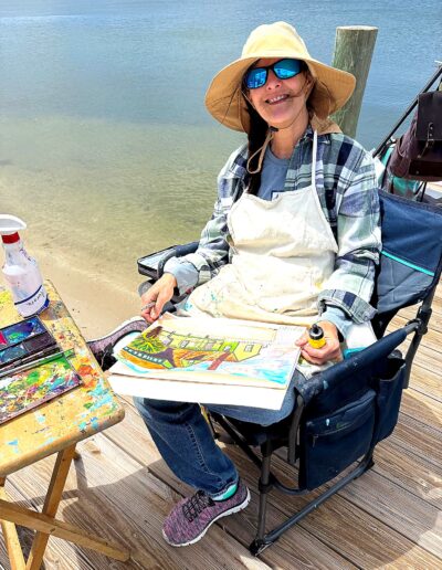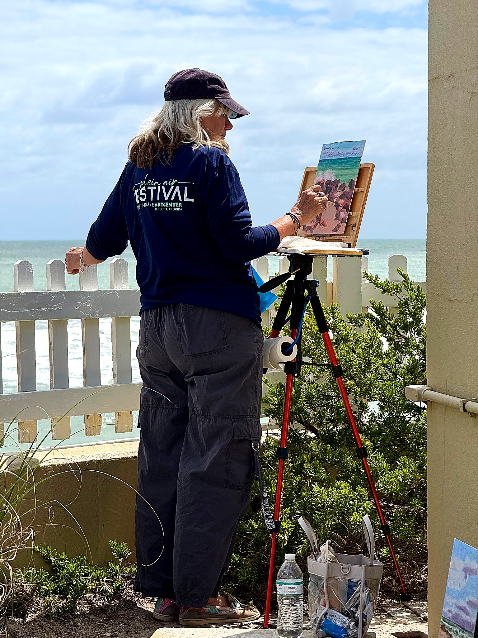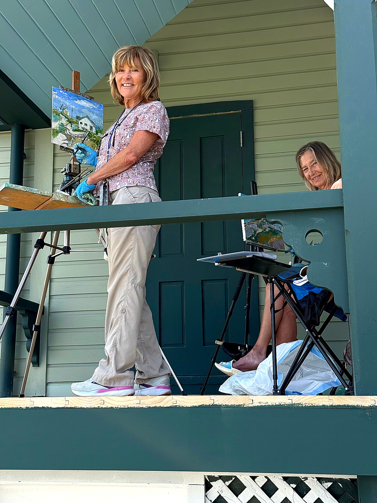 From early morning through the afternoon, visitors and passersby experienced the creative process firsthand. Easels lined the property as artists interpreted the scene in their own distinctive styles—some focusing on architectural detail, others on the movement of the sea and sky, and many blending both into expressive, atmospheric works.
