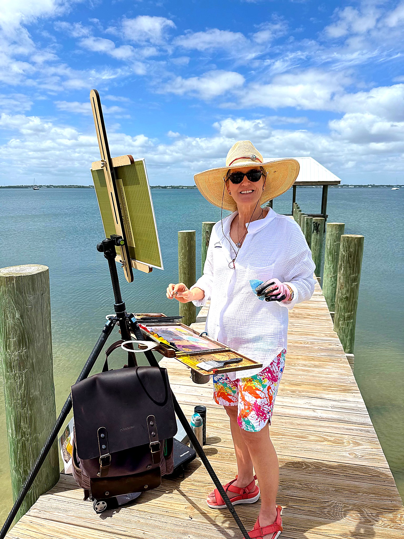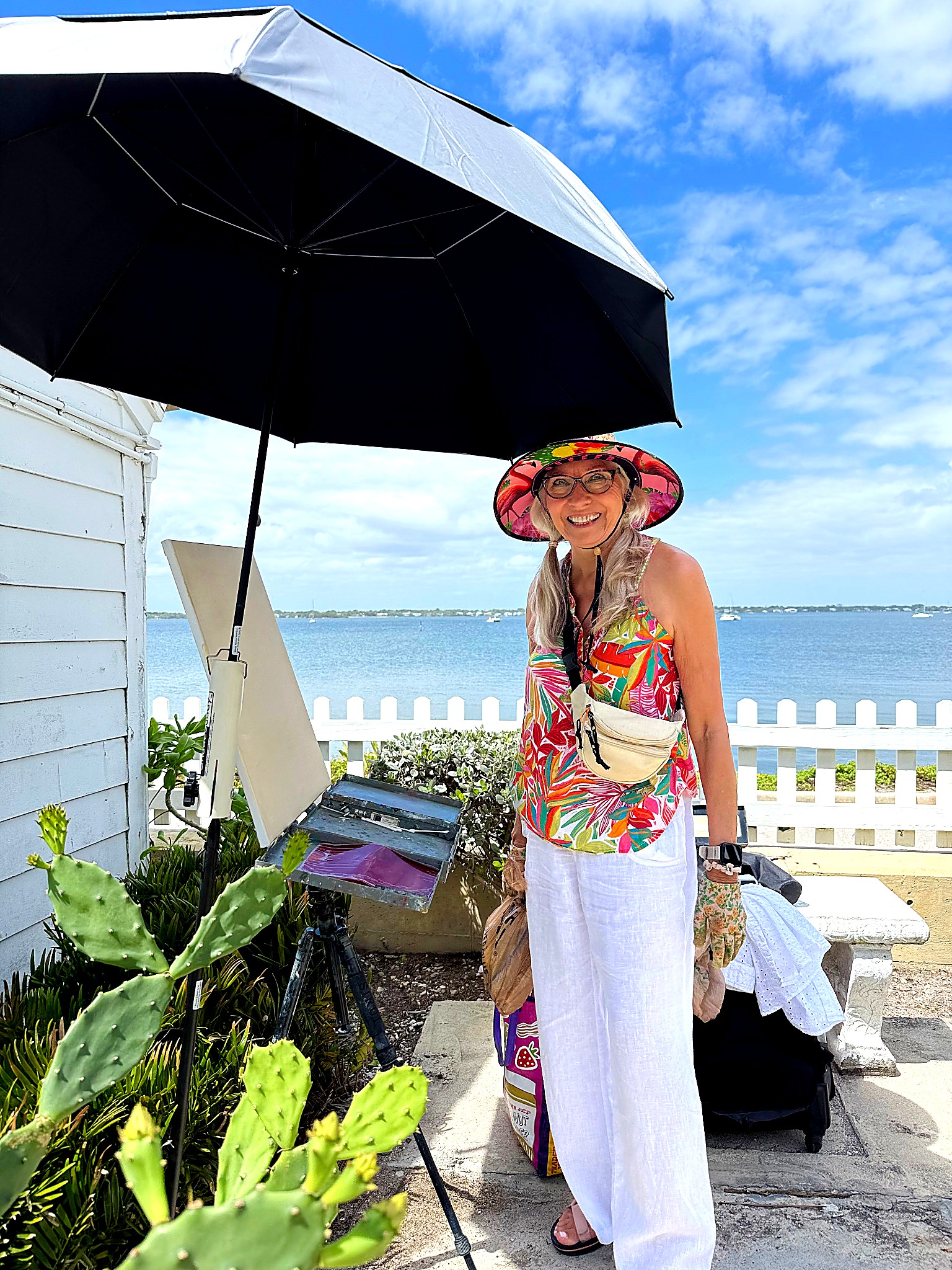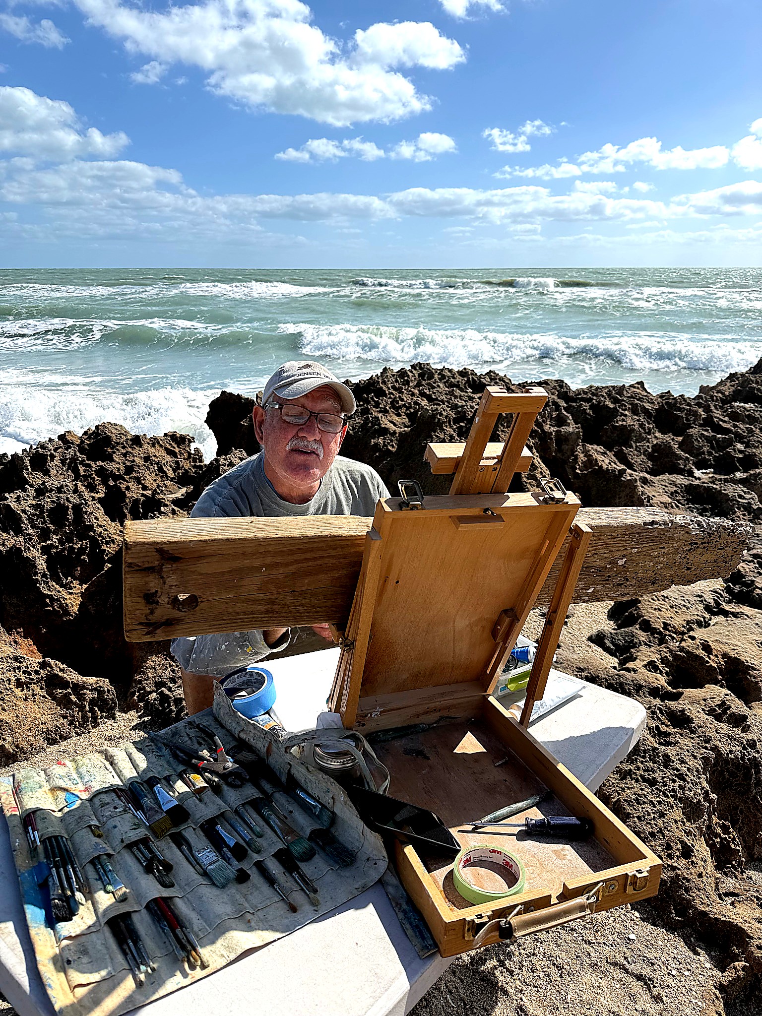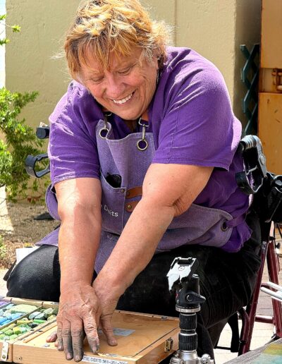 From early morning through the afternoon, visitors and passersby experienced the creative process firsthand. Easels lined the property as artists interpreted the scene in their own distinctive styles—some focusing on architectural detail, others on the movement of the sea and sky, and many blending both into expressive, atmospheric works.